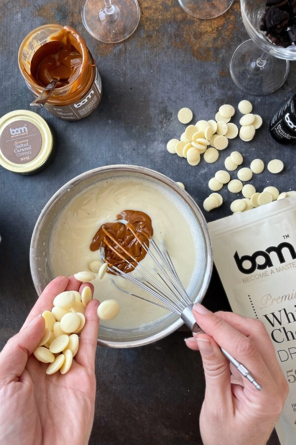 La mousse al cioccolato bianco è un dessert composto da soli tre ingredienti principali: Cioccolato bianco BAM, panna montata e pasta di vaniglia BAM. I lamponi e il cioccolato bianco sono una combinazione incredibile, e l'aggiunta di formaggio cremoso ...