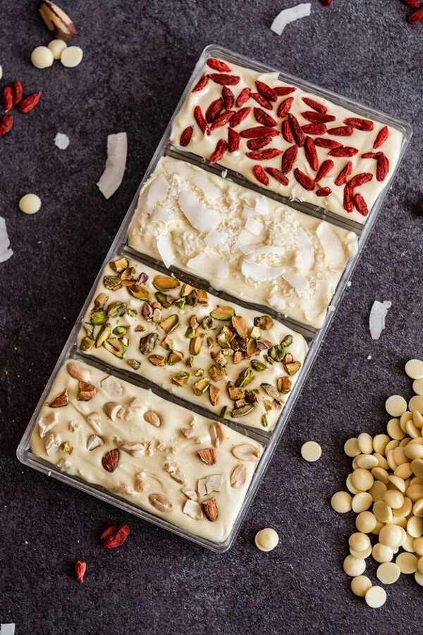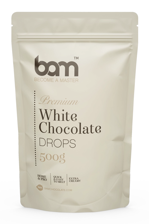 Il cioccolato bianco BAM è un cioccolato belga di prima qualità molto versatile. È ideale per stampi, praline, creme, mousse, ganache, gelati, biscotti, biscotti, pan di Spagna e altre strutture di cioccolato cremoso. Il cioccolato viene modellato in gocc