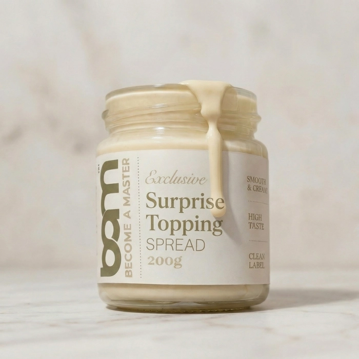 Questa volta abbiamo nascosto uno dei condimenti BAM sotto una tenda nera . Sotto il nero c''è una guarnizione che potete spalmare su una frittella o utilizzare per preparare il ripieno di frutta della vostra prossima torta. Il suo sapore si sposa perfettamente con il cioccolato bianco o fondente. La consistenza ricca del topping delizierà le vostre papille gustative con il sapore dei noti frutti tropicali. Sapete quale abbiamo nascosto nella confezione nera a sorpresa?