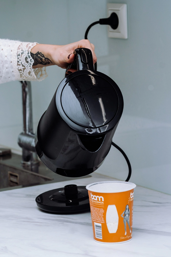 Aprire il coperchio del barattolo e versare 130 ml di acqua bollente sul contenuto. Mescolare bene, lasciare riposare per 3-5 minuti e gustare!