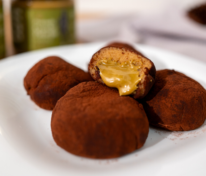 Rotolare le palline finite nel cacao in polvere BAM per ricoprirle uniformemente.