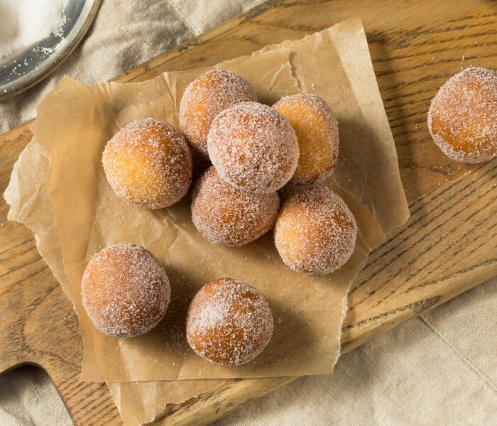 Rotolare le palline calde in una miscela di zucchero e cannella. Assicuratevi che siano ricoperte in modo uniforme.