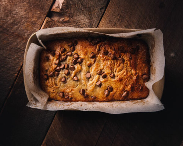 • 1 Per il pane alla banana con cioccolato e lamponi