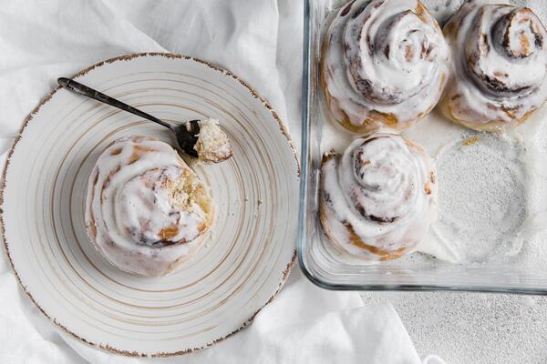 Preparare quindi la glassa. Nella ciotola di un mixer elettrico, unire il formaggio cremoso, il burro, lo zucchero a velo e la pasta di vaniglia BAM. Sbattere fino a ottenere un composto liscio e spumoso. Distribuire sui cinnamon rolls e servire immediatamente.